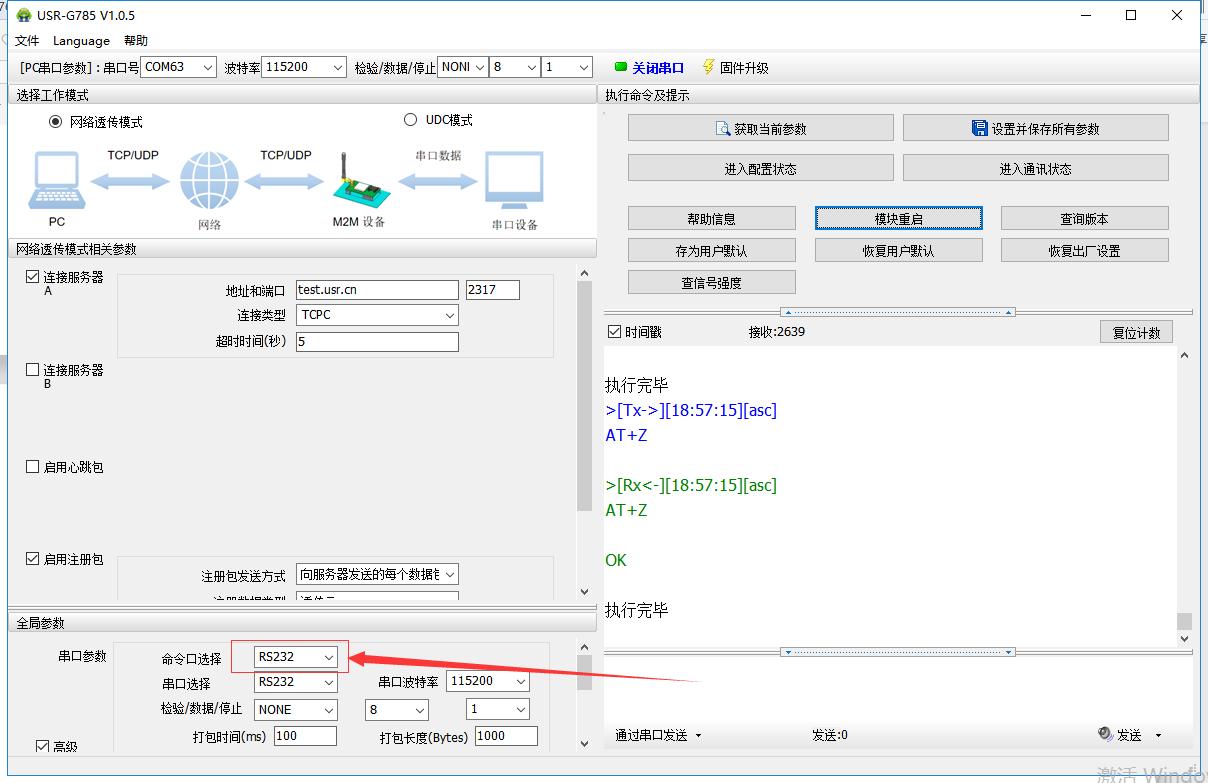 注意:因為USR-G785的串口是端子接口的,232的九針或者九孔的串口線需要通過導線轉接一下