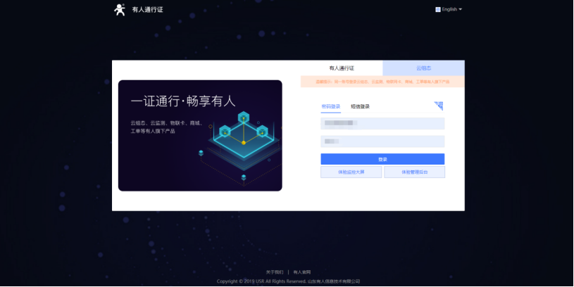 1、打開有人云的網址,通過主賬號注冊的有人云通行證進行登錄