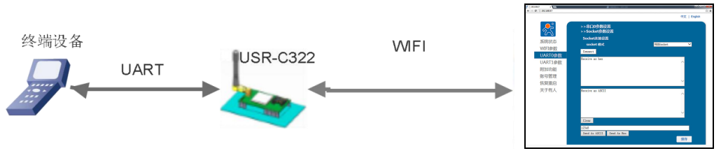 USR-C322支持WEBsocket透?jìng)鳎K作為webserver,端口8000。從串口到網(wǎng)頁(yè)只支持Websocket ASCII碼透?jìng)鳌W疃嘀С?個(gè)client連接,當(dāng)連接數(shù)超過4個(gè)后,模塊自動(dòng)關(guān)閉最先建立的socket連接。網(wǎng)頁(yè)源碼是公開的,用戶可以自己修改網(wǎng)頁(yè)實(shí)現(xiàn)自己的特殊網(wǎng)頁(yè)需要,升級(jí)自定義網(wǎng)頁(yè)請(qǐng)參考軟件設(shè)計(jì)手冊(cè)網(wǎng)頁(yè)自定義功能描述。模塊只有UART0串口支持此模式。