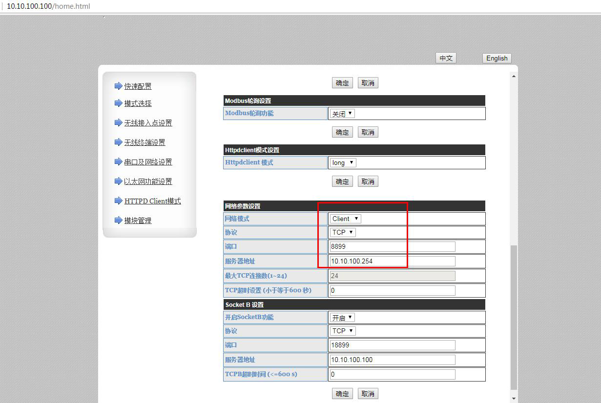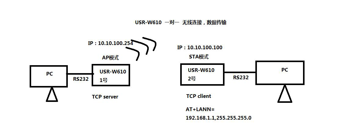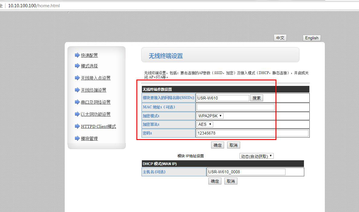 2號USR-W610設置STA模式,去連接1號W610的wifi。工作模式設置TCP client。