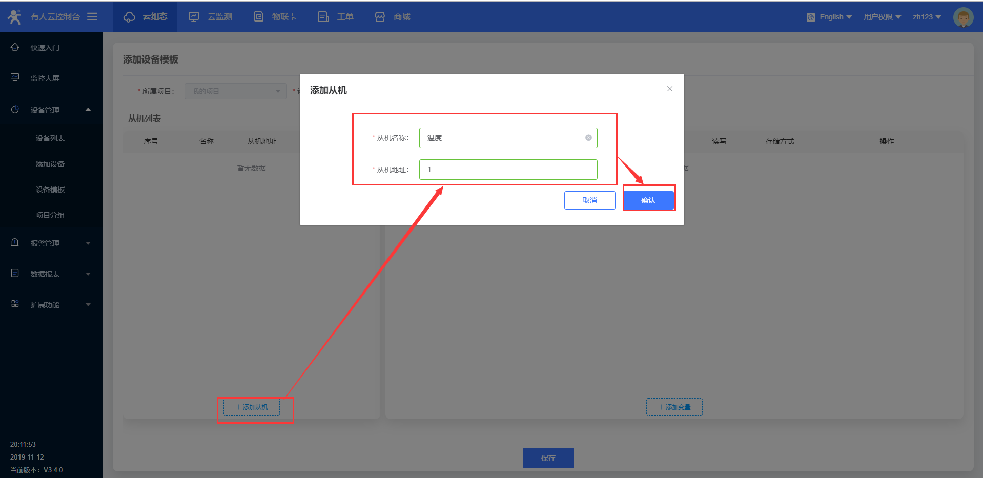 15、在有人云界面點擊設備名稱,可以看到剛才添加的從機變量;