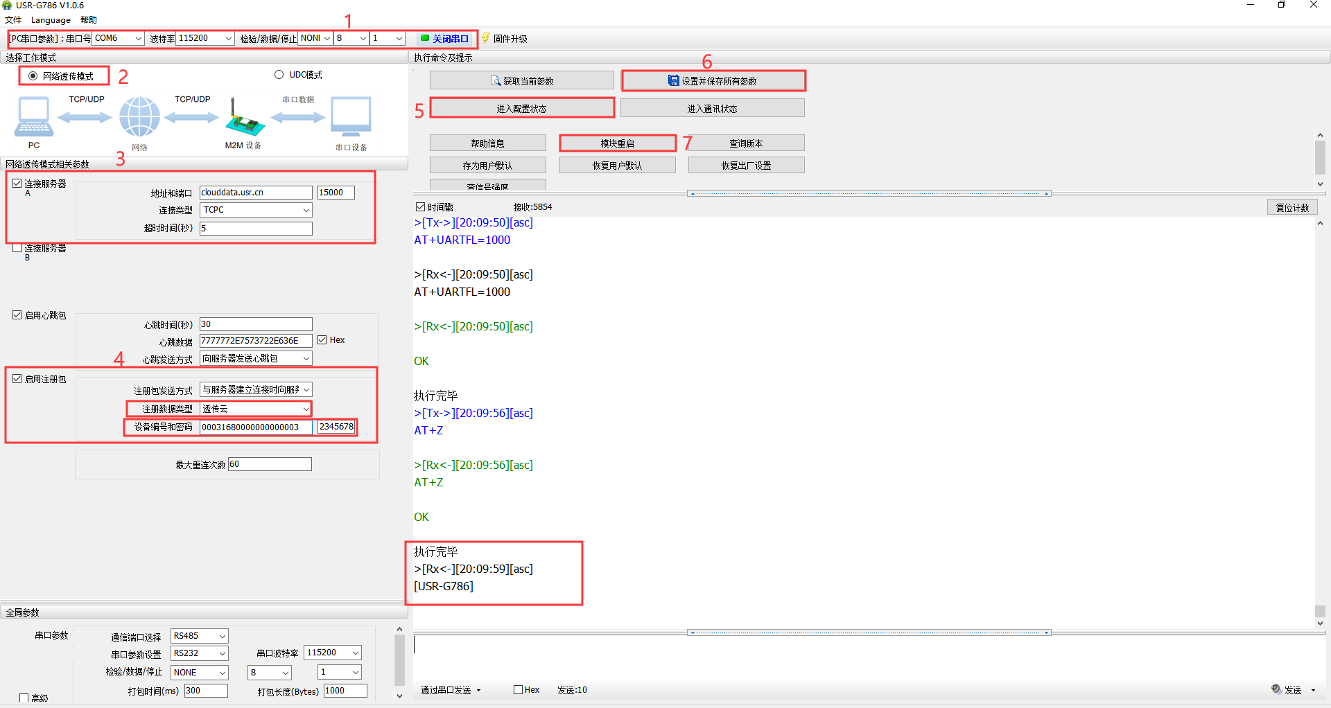 6>進入配置狀態,返回OK后,點擊設置并保存所有參數,綠色指令為成功;