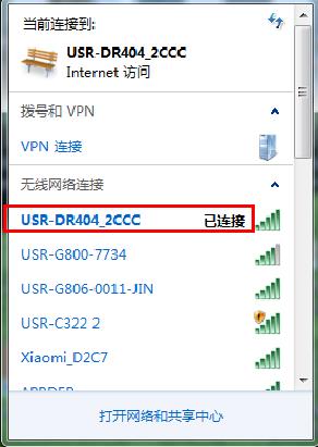 USR-DR404出廠默認是AP模式,電腦無線網卡去搜索USR-DR404的wifi。