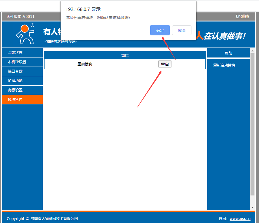 7、在“模塊管理”處重啟模塊。重啟成功之后會提示“重啟成功”。