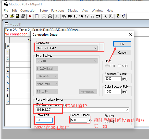 二、實物連接:DR301網線直連PC,串口線直連PC