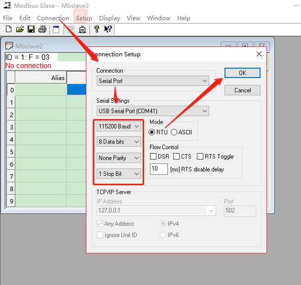 本案例測試說明:用modbus slave軟件模擬modbus rtu協議的串口設備;
