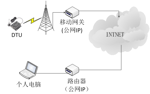 DTU進行聯網的時候,其實是處于移動或者聯通的手機局域網里的一個設備,它獲得的IP地址是一個局域網的IP,類似于電話網絡里的分機,而且這個分機號還不是固定的,是不斷變化的,它每次發起連接的時候都會從移動電話網里面獲得一個新的分機號;如果用戶希望DTU能直接連接到他的電腦上,那么他的電腦就必須有一個公網IP(類似于擁有固定的號碼),或者最少能獲得一個公網IP的分機號碼(做端口映射),否則是無法通信的。