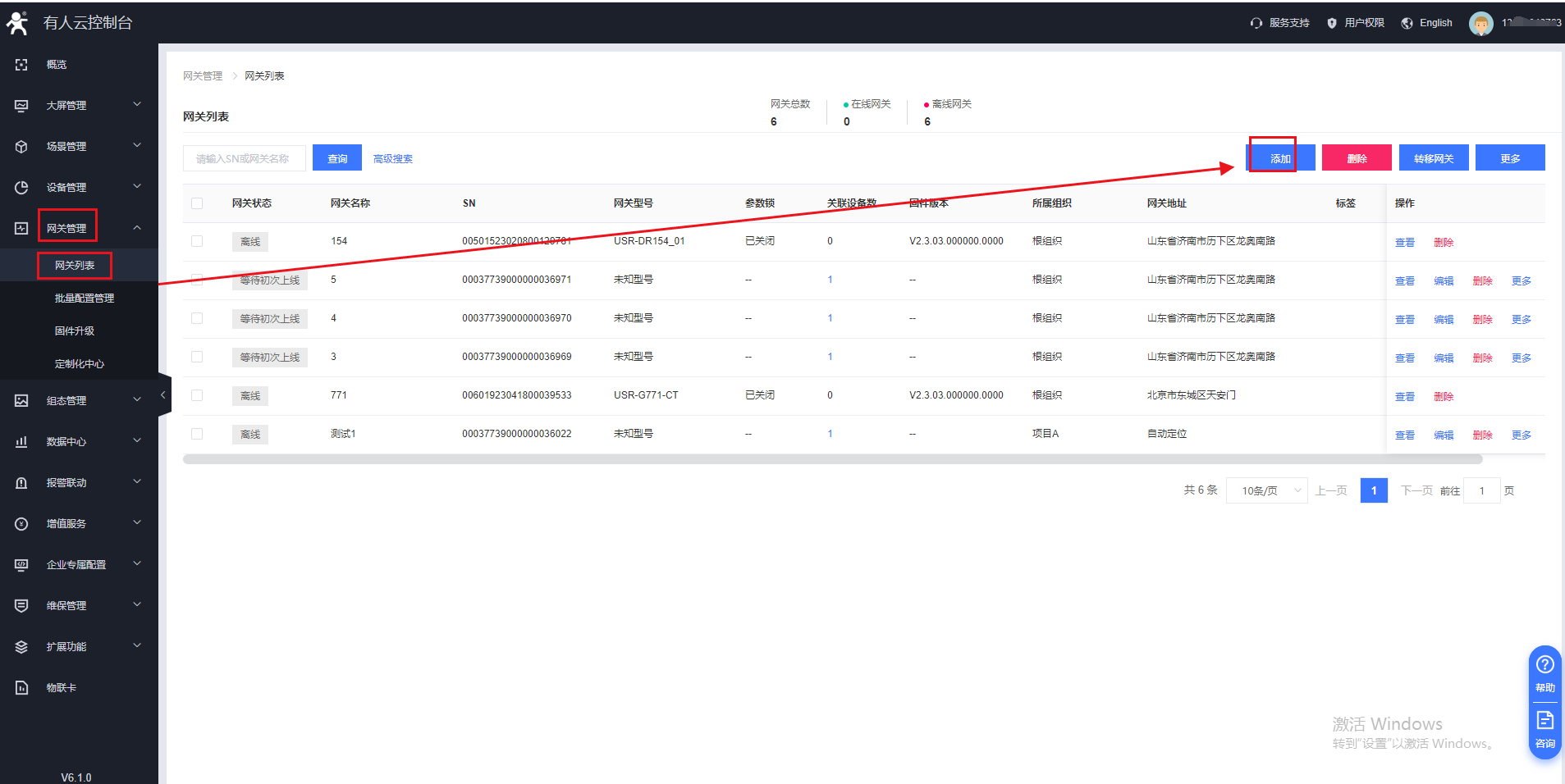 (1)云平臺添加網關,在網關管理---網關列表--添加,點擊SN不支持,系統自動生成,不需要客戶自己設置,通訊密碼可以自定義8位密碼.(建議使用系統自動生成的通訊密碼)