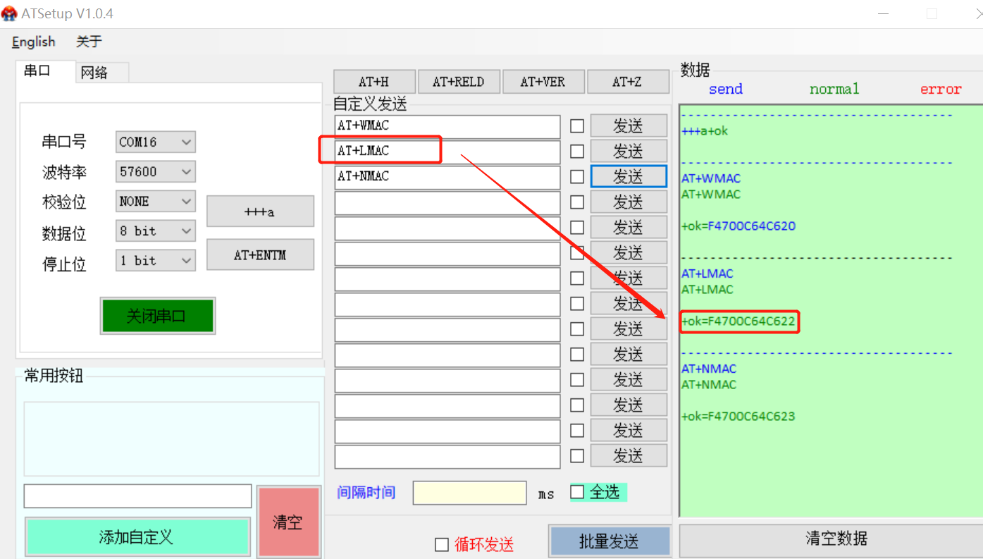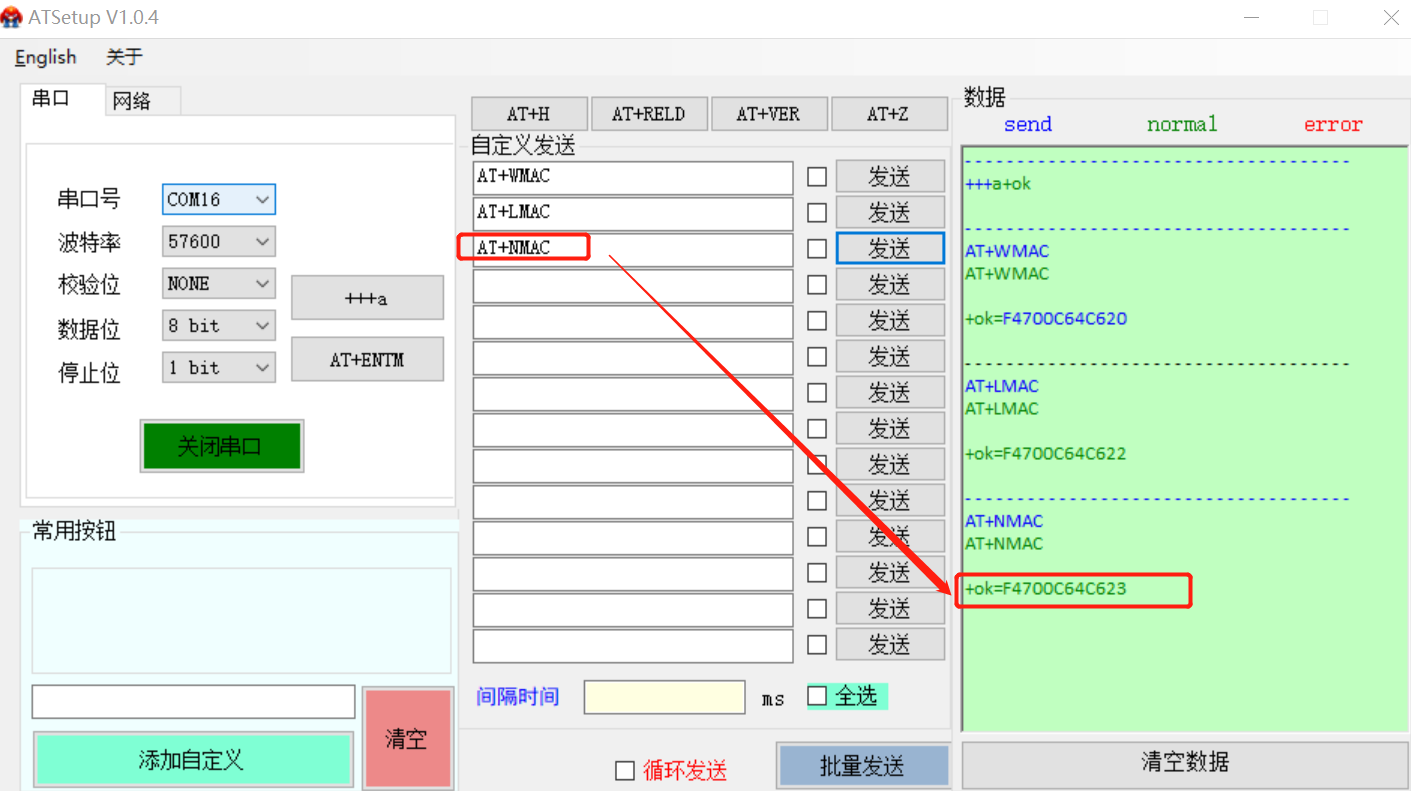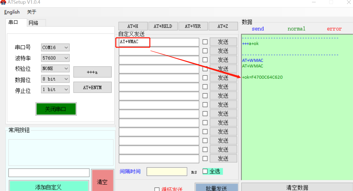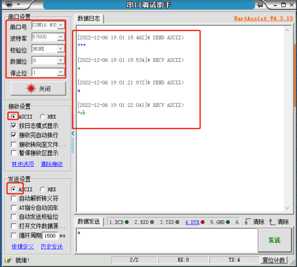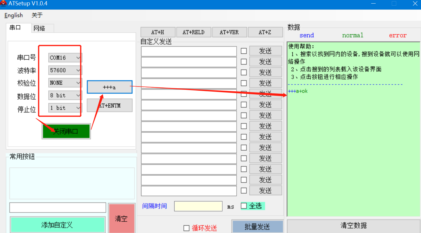 1、使用小紅人進入配置狀態(tài);設(shè)置串口參數(shù),發(fā)送+++a進入配置裝狀態(tài)