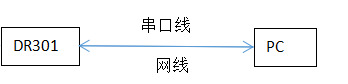 2、將301(USR-DR301,簡稱 301)的串口通過串口線(或USB 轉串口線)與PC相連接,通過網線將 301 的網口 PC 的網口相連接,檢測硬件連接無錯誤后,接入我們配送的電源適配器,給 301 供電。