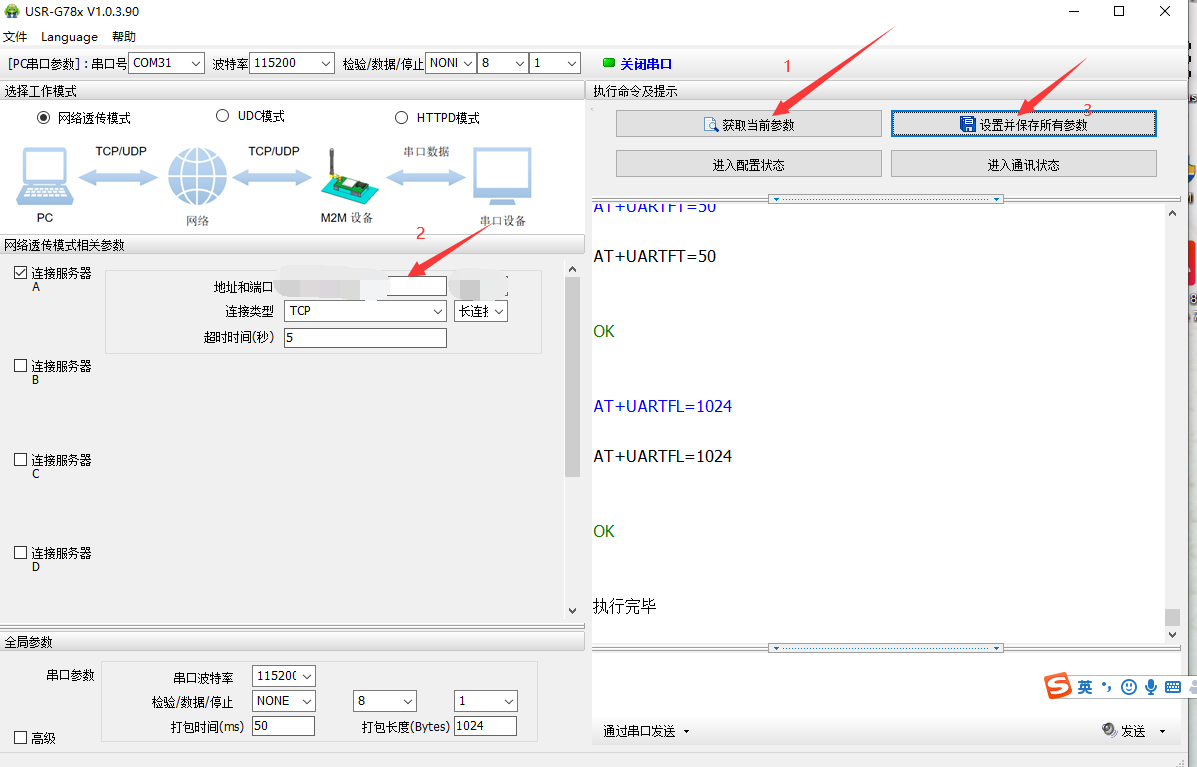 2.填寫要連接的遠程服務器的ip的端口號,并保存參數
