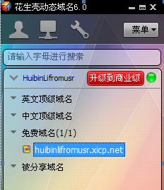 下載花生殼軟件,申請一個動態域名,如下動態域名名為:huibinlifromusr.xicp.net