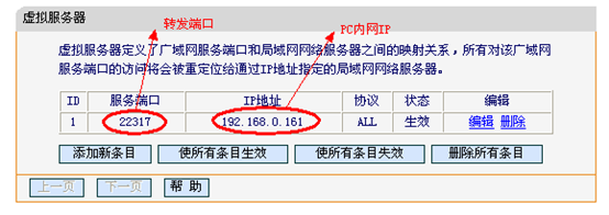 當前PC使用靜態IP:192.168.0.161,轉發端口22317