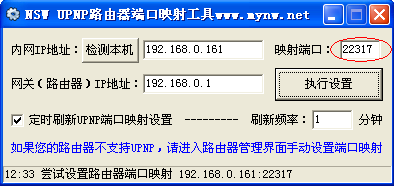 2) 如果路由器開啟了端口映射功能,也可以使用端口映射工具軟件(下圖所示)。