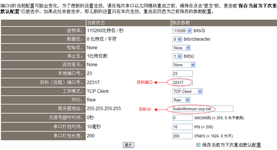 設置目標IP及端口如下,第一個是USR-TCP232-E45以太網轉串口模塊,第二個是GPRS232-700,