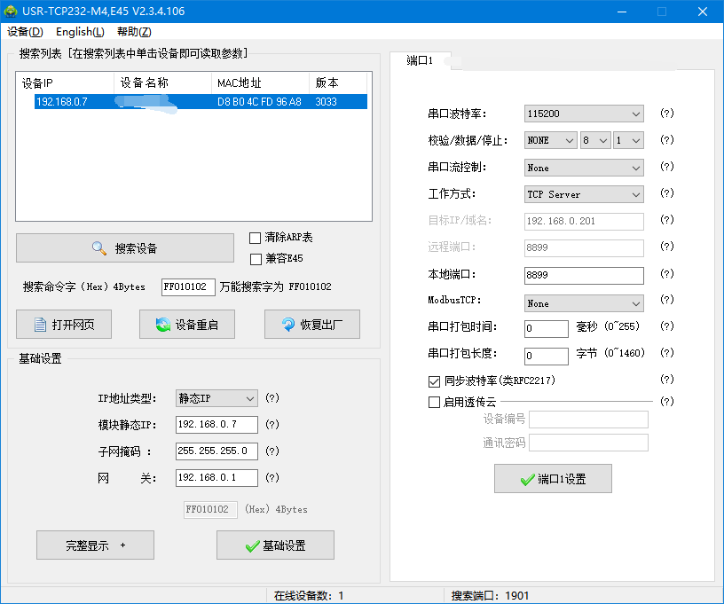 3、搜索設備--搜到設備之后Ip地址類型設置成DHCP