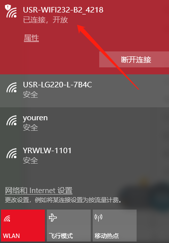(1) 將模塊焊接到測試底板上,測試板串口連接電腦串口,電腦連接WiFi。在電腦無線搜索欄,搜索B2,連接。