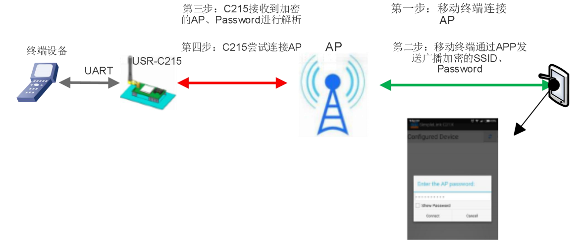 (4) 打開Simplelink APP,輸入wifi密碼端口號:48899,拉低模塊 Reload 引腳 1-3 秒,則模塊進入 Simplelink 配置,模塊不斷檢測接收的數據包,成功解析出接收到廣播包的 SSID 和密碼后,模塊主動去連接 AP。