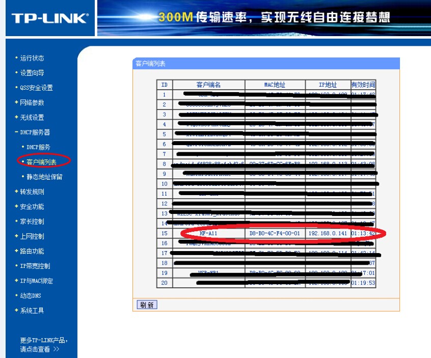 完成之后,從無線路由器的DHCP列表里面能找到模塊已經(jīng)主動連入路由器創(chuàng)建的網(wǎng)絡(luò)。