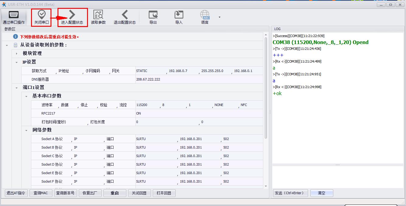 二、靜態IP時USR-M511做MODBUS RTU從機: