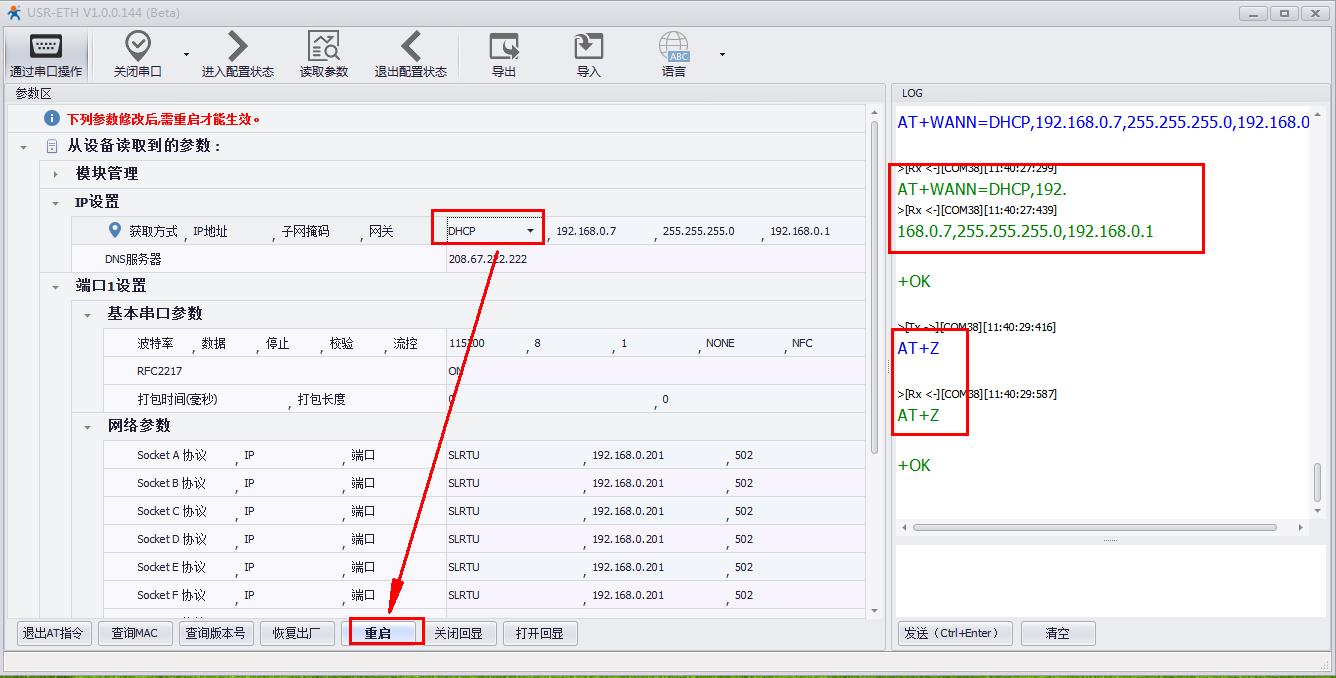 USR-M511網口用網線接路由器,電腦也連接同一個路由器。USR-M511用串口設置軟件設置DHCP,動態獲取IP。