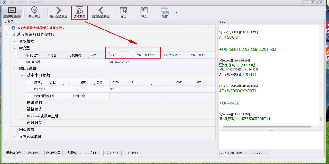 三、DHCP動態獲取IP時,USR-M511做MODBUS RTU從機: