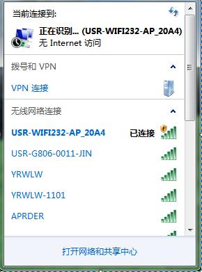 2、USR-W610默認是AP模式,電腦連接USR-W610的wifi。