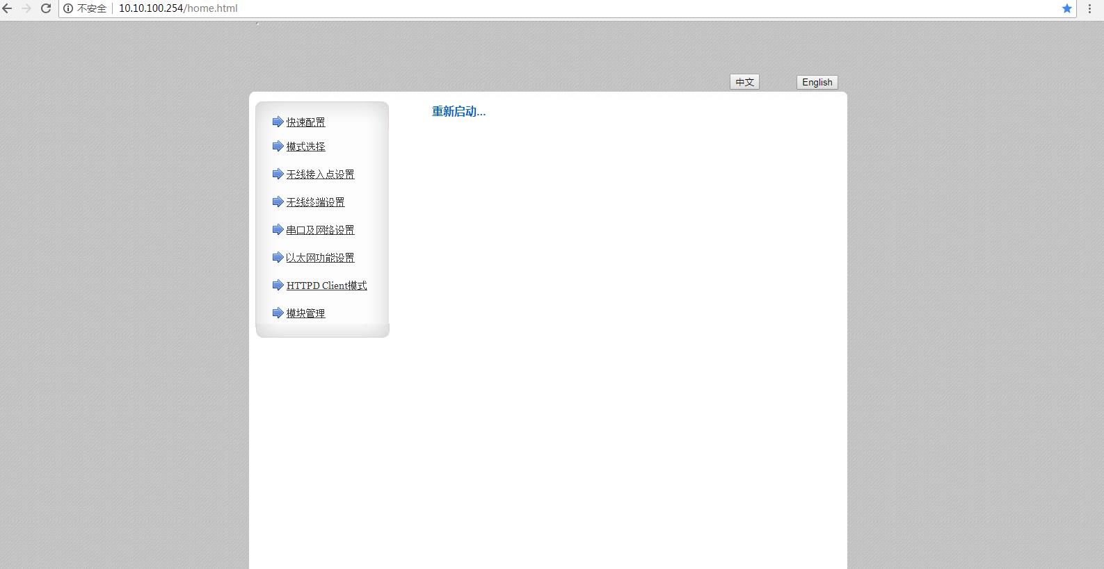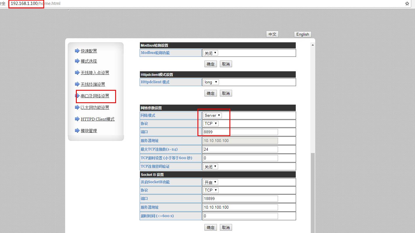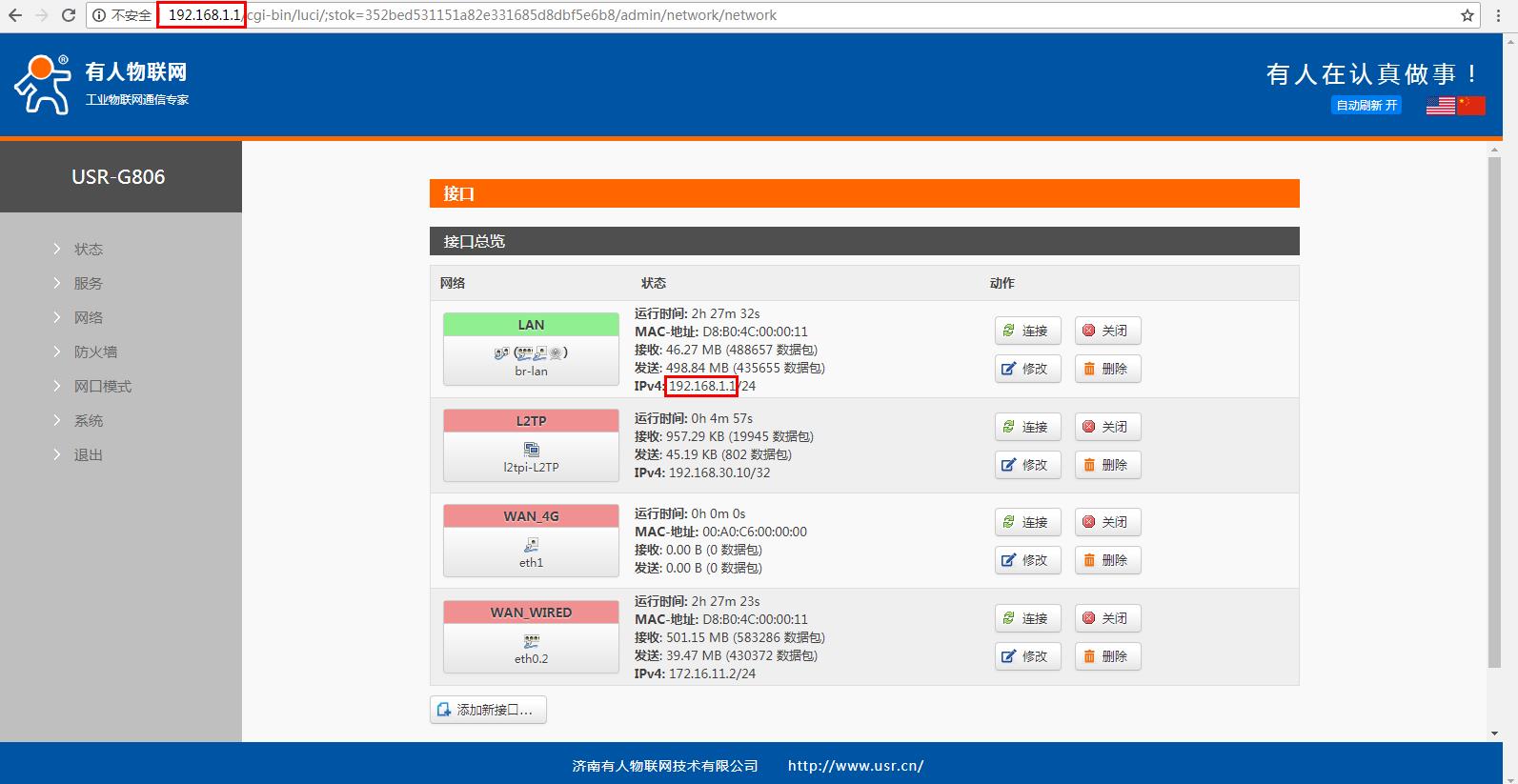 1、電腦連接路由器的wifi,電腦瀏覽器使用設置的IP 192.168.1.100,登錄USR-W610的內置網頁。