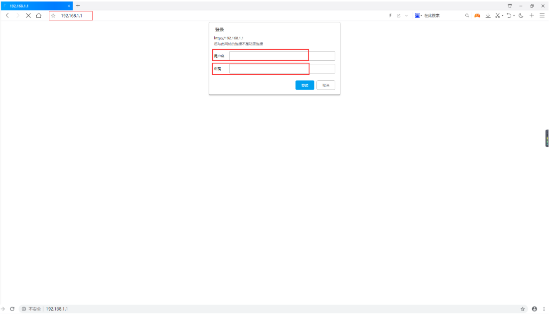 ②打開瀏覽器,在地址欄輸入192.168.1.1后回車,彈出登錄界面,填寫用戶名密碼(出廠默認都是admin)點擊確認,即可進入配置網頁。