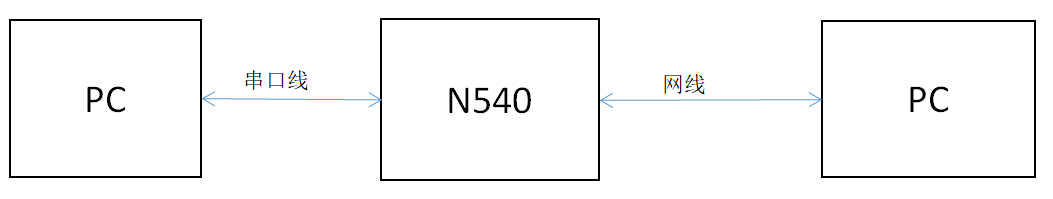 1. 將N540串口通過串口轉(zhuǎn)USB線與PC相連接,通過網(wǎng)線將 N540的網(wǎng)口 和PC 的網(wǎng)口相連接,檢測硬件連接無錯(cuò)誤后,接入我們配送的電源適配器,給 N540 供電。