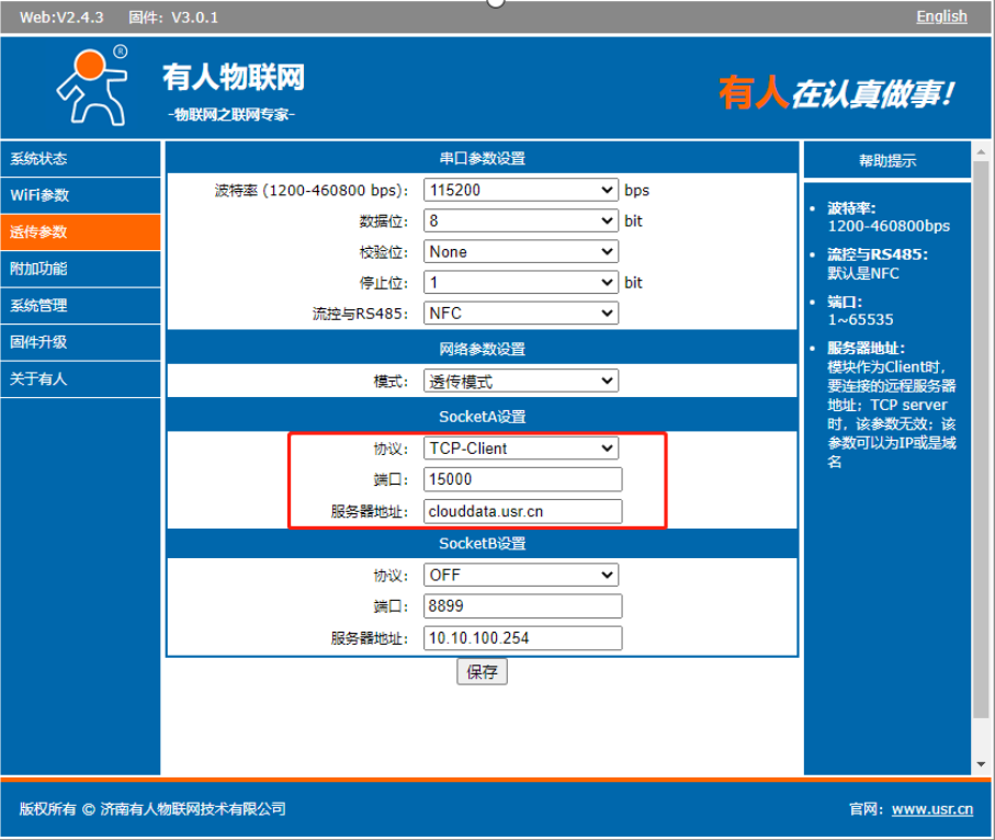 填寫(xiě)地址clouddata.usr.cn,端口15000,點(diǎn)擊保存并選擇重啟。