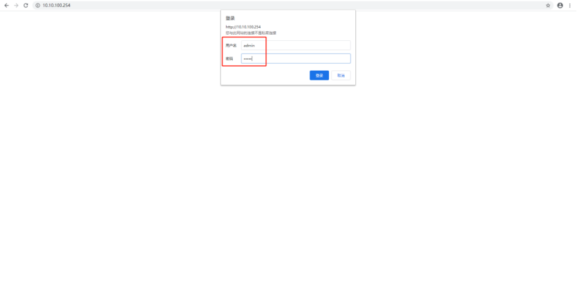 2>打開(kāi)谷歌瀏覽器,輸入默認(rèn)模塊IP:10.10.100.254,用戶(hù)名密碼均為admin