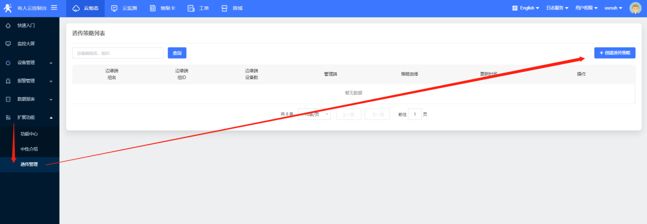 11、在“擴展功能”-“功能中心”選擇開通“透傳管理”功能;