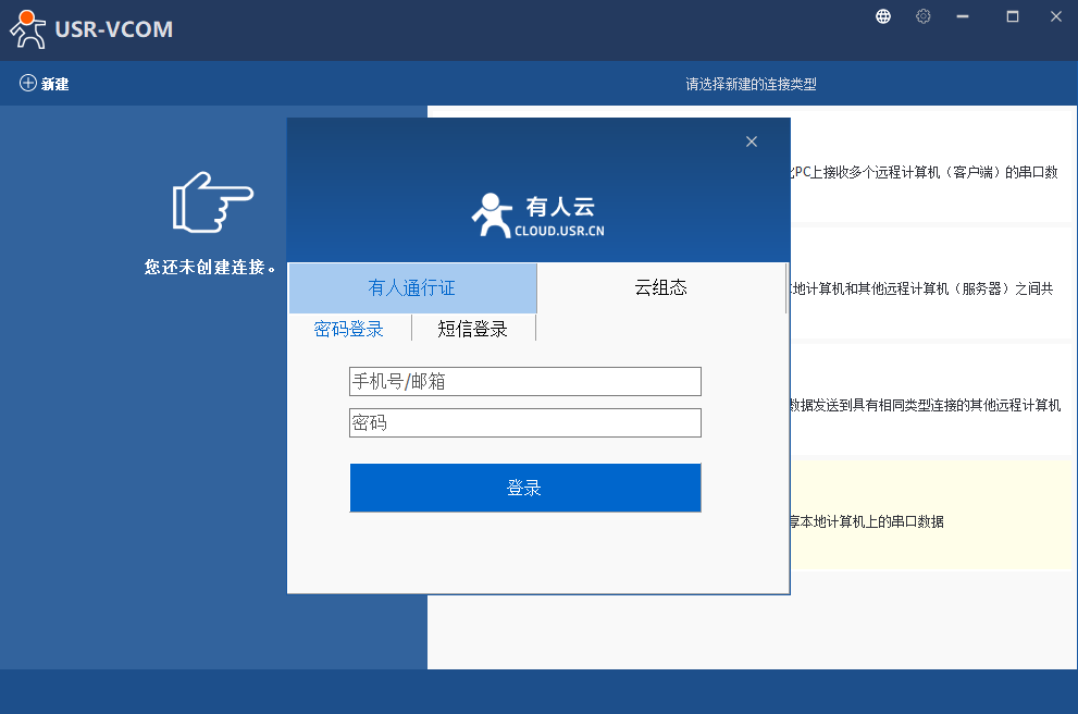 3、選擇一個不常用的串口號,選擇云端剛才添加的設備,點新建,生成設備對應的虛擬串口