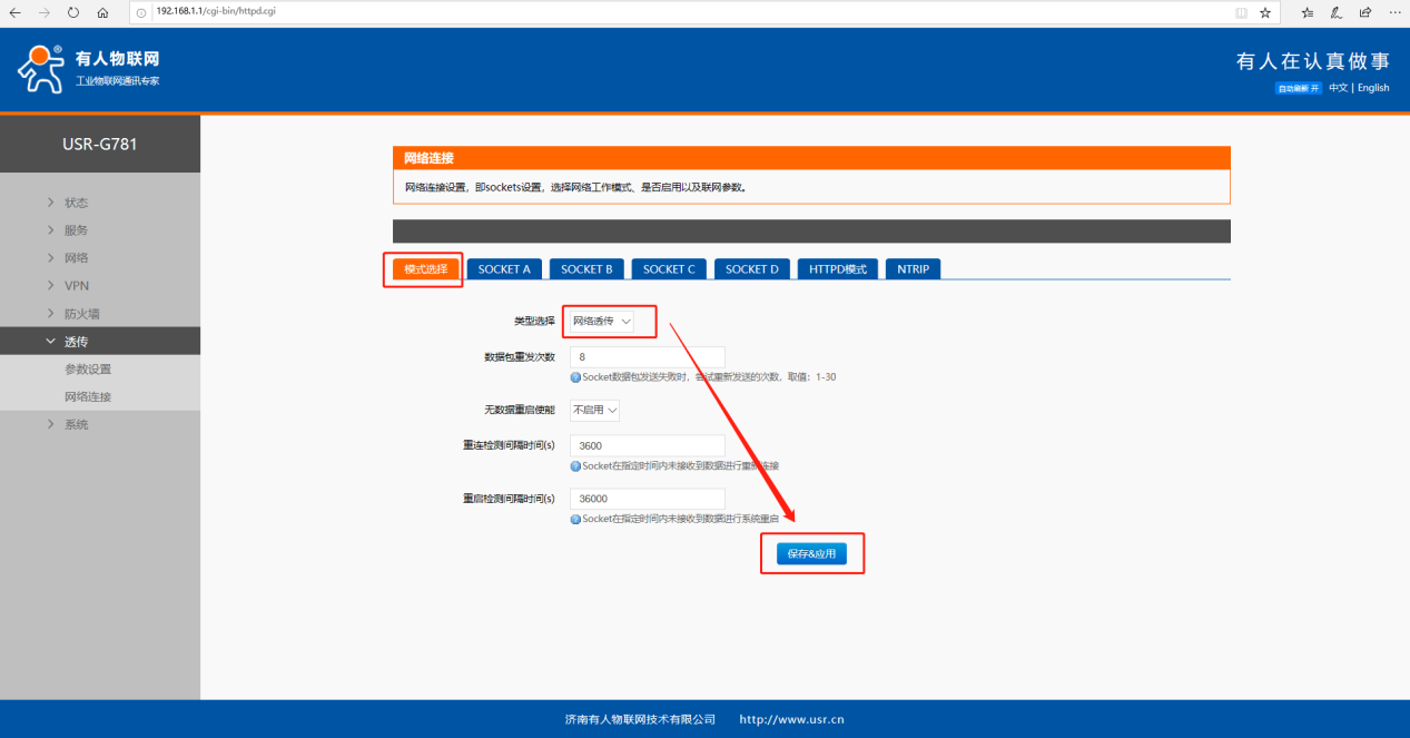 選擇SOCKETA,啟用,設置地址和端口,保存并應用
