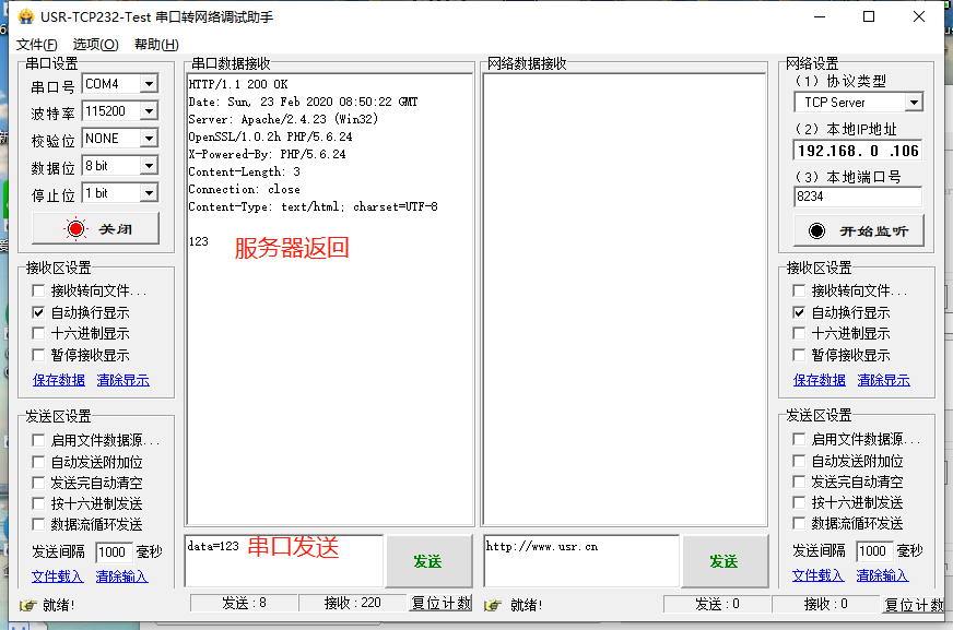HTTPD_Client主要應用于網頁服務器,串口服務器發送的數據,可以透傳到網頁服務器接收。網頁服務器返回數據給串口服務器的串口。用于監控串口設備。