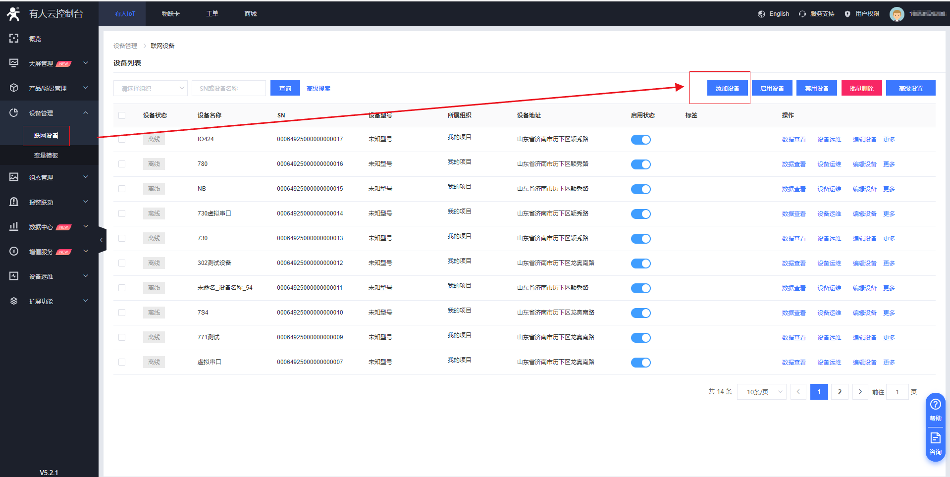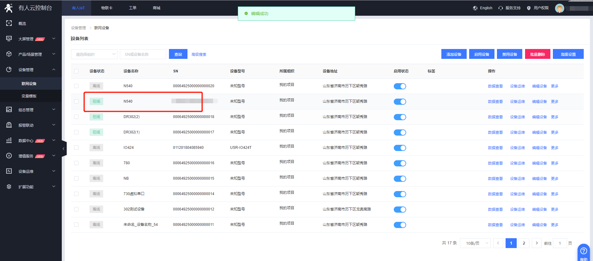 13、可在云端看到添加的設(shè)備已經(jīng)在線狀態(tài)