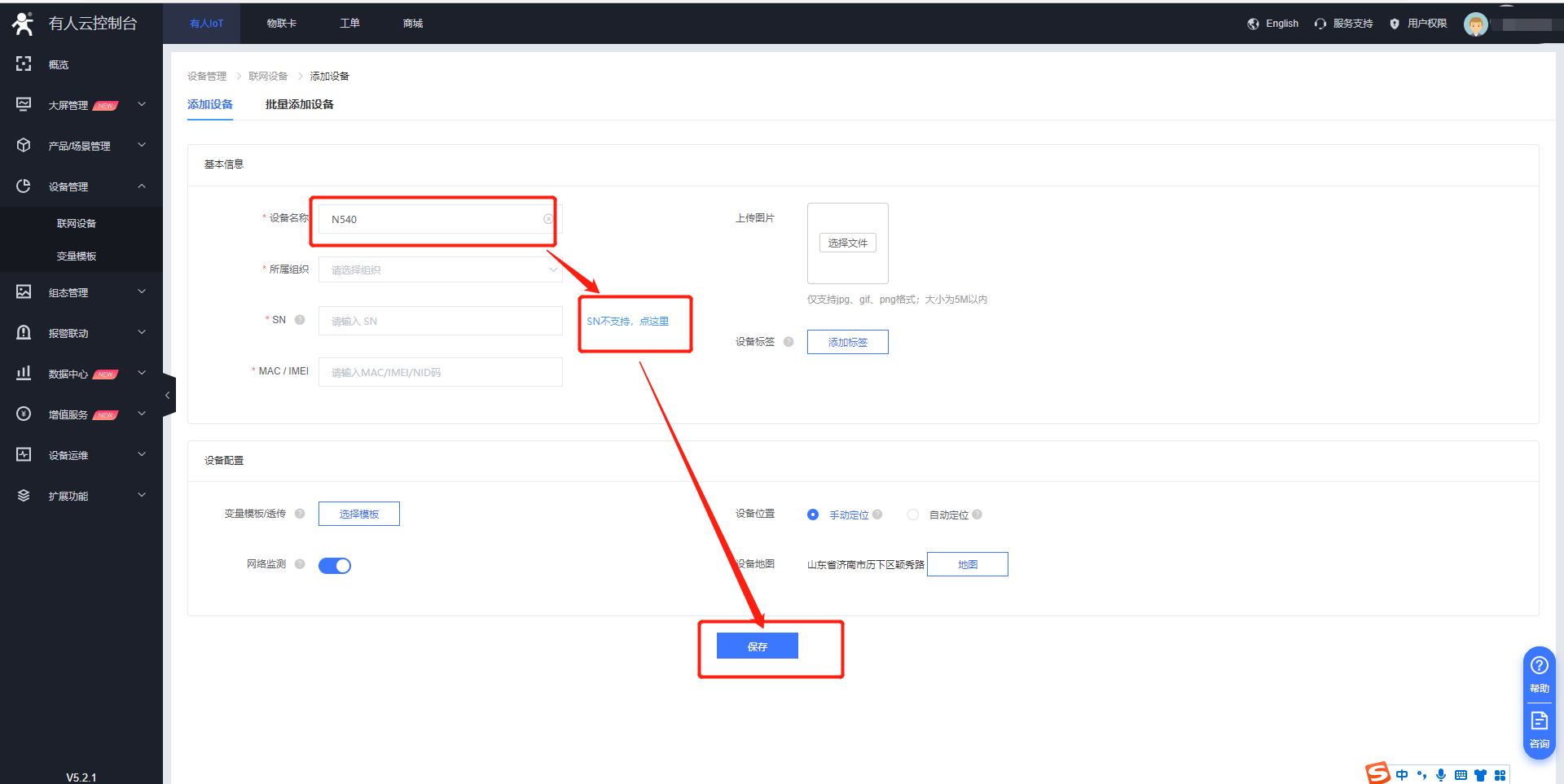 2、添加設(shè)備(名稱可自定義,按照不支持Sn方式添加設(shè)備)