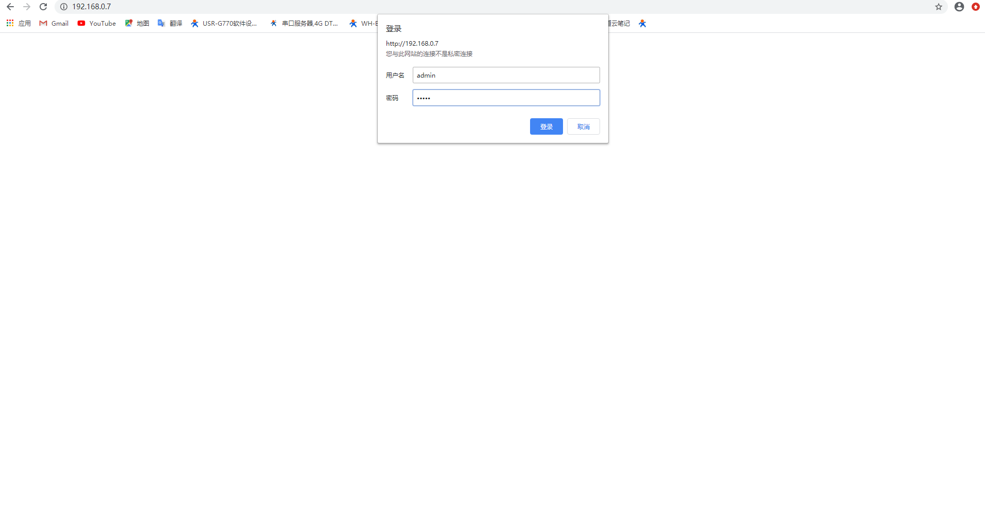 8、瀏覽器輸入IP 192.168.0.7進入N540的內(nèi)置網(wǎng)頁,用戶名:admin密碼:admin(也可使用N540的設(shè)置軟件進行配置)