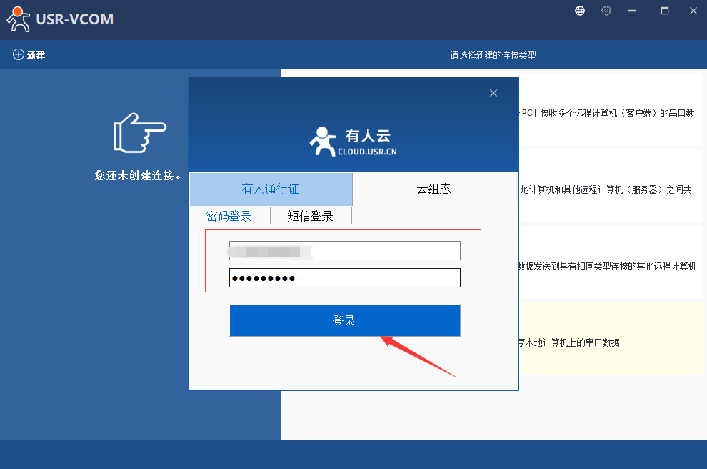 1、登錄有人云(若沒有有人云賬號,先注冊),輸出賬號密碼登錄。https://account.usr.cn/#/login_cps?type=mp_scada