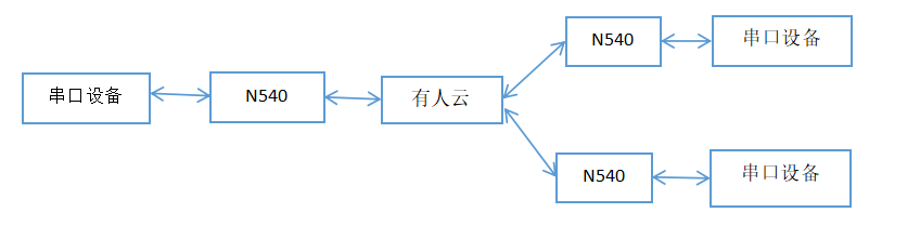 串口調試助手(模擬串口設備)<——>N540<——>有人云<——>虛擬串口(模擬N540)<——>串口調試助手(模擬串口設備)