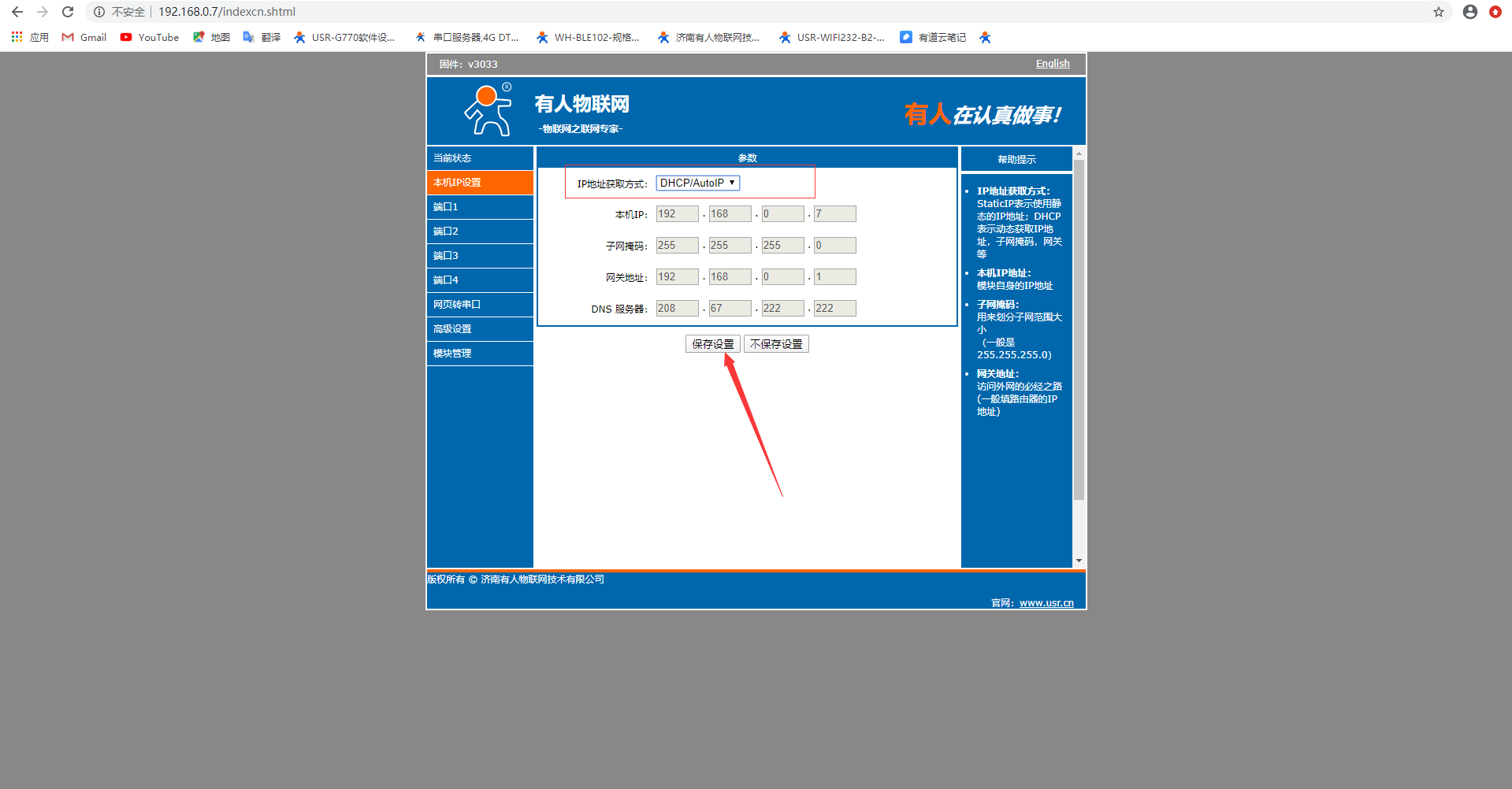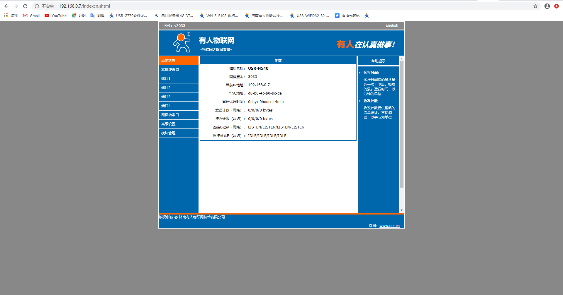 3.瀏覽器輸入IP192.168.0.7進入N540的內置網頁
