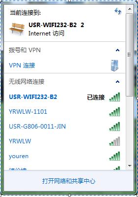 USR-WIFI232-B2出廠默認是Ap模式,電腦無線網卡去搜索USR-WIFI232-B2的wifi。