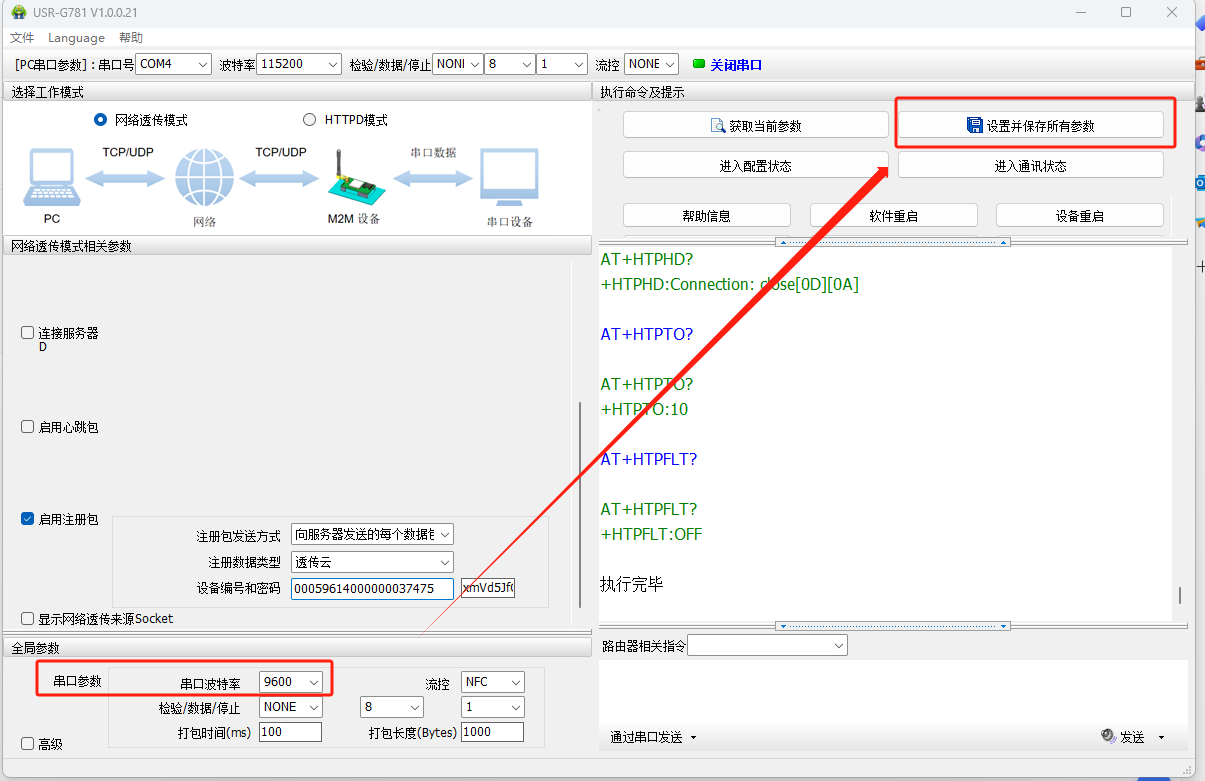 可以從全局參數(shù)中修改串口的波特率、校驗位等參數(shù),然后點擊設置并保存參數(shù)