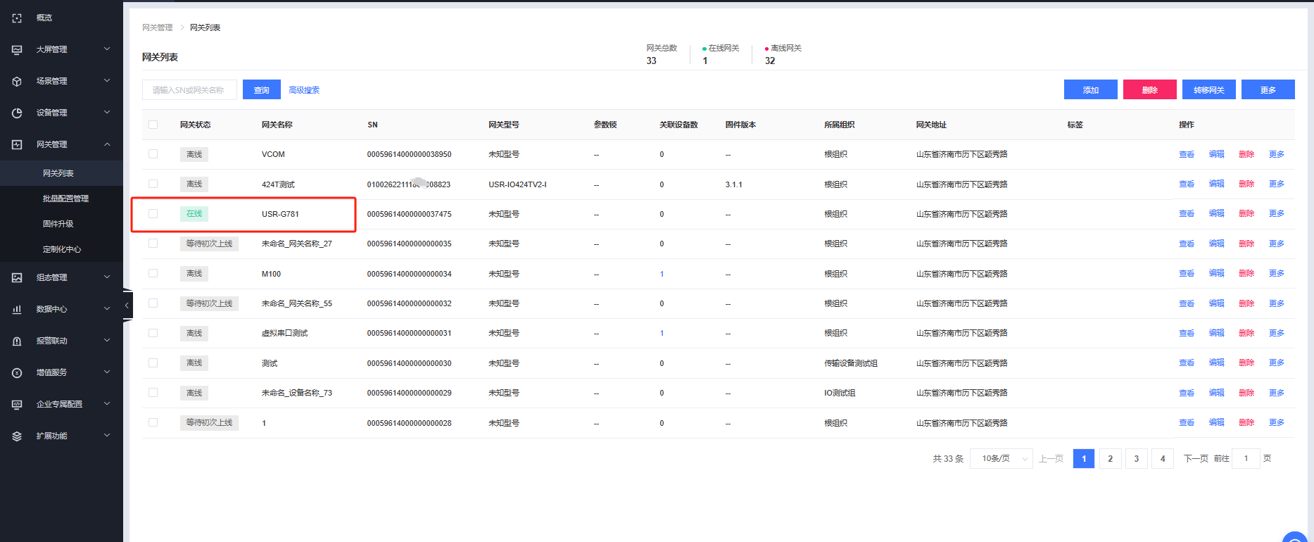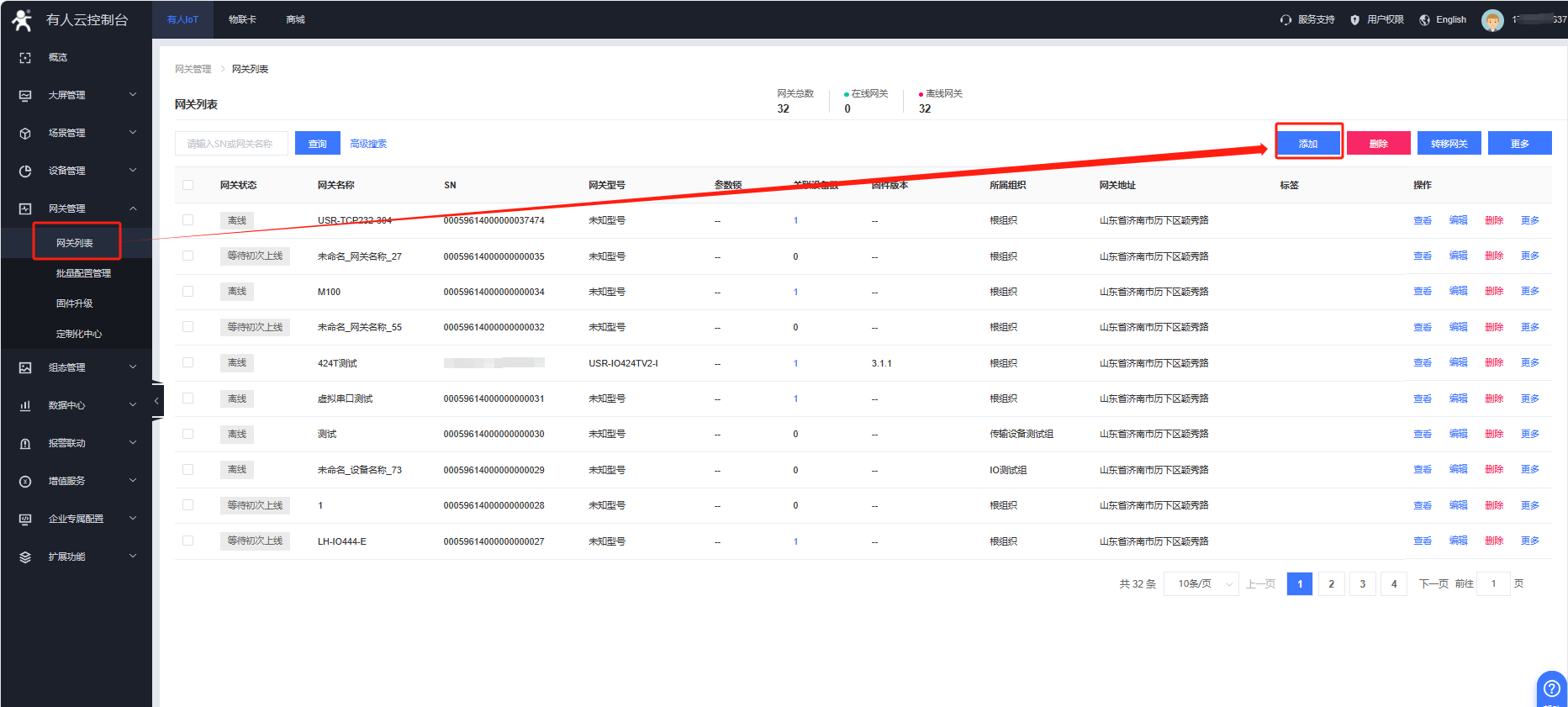網(wǎng)關管理--網(wǎng)關列表--添加--單個添加