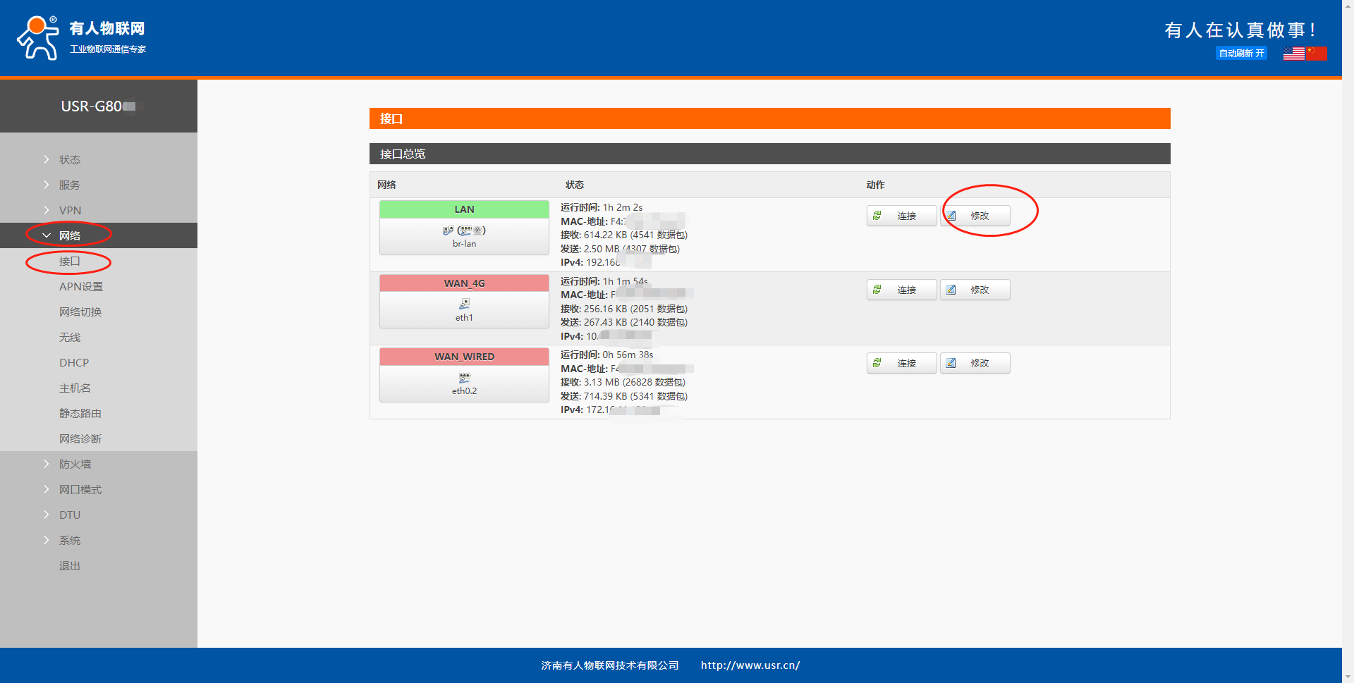 G80x(包括G806G806s等以及G810)系列:網絡--接口--修改--IPV4地址--保存&應用