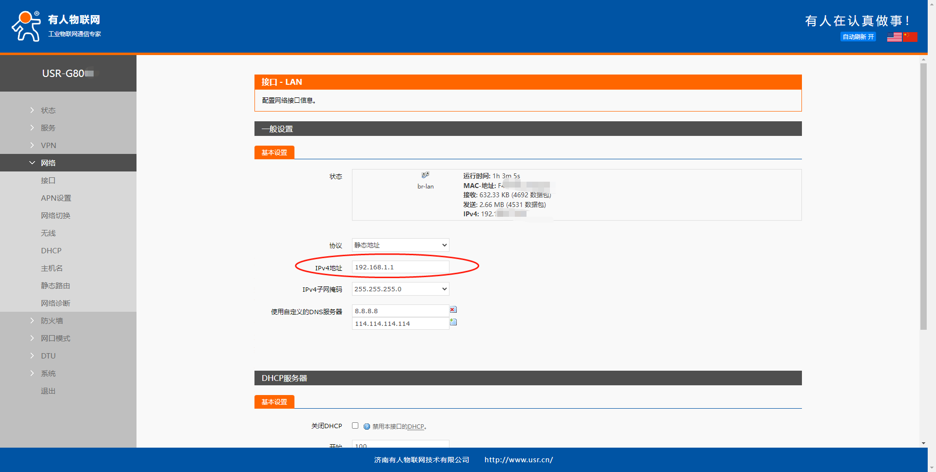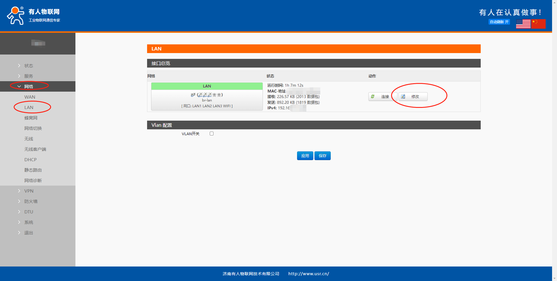 G781:網絡--接口--LAN口設置--IPV4地址--保存&應用
