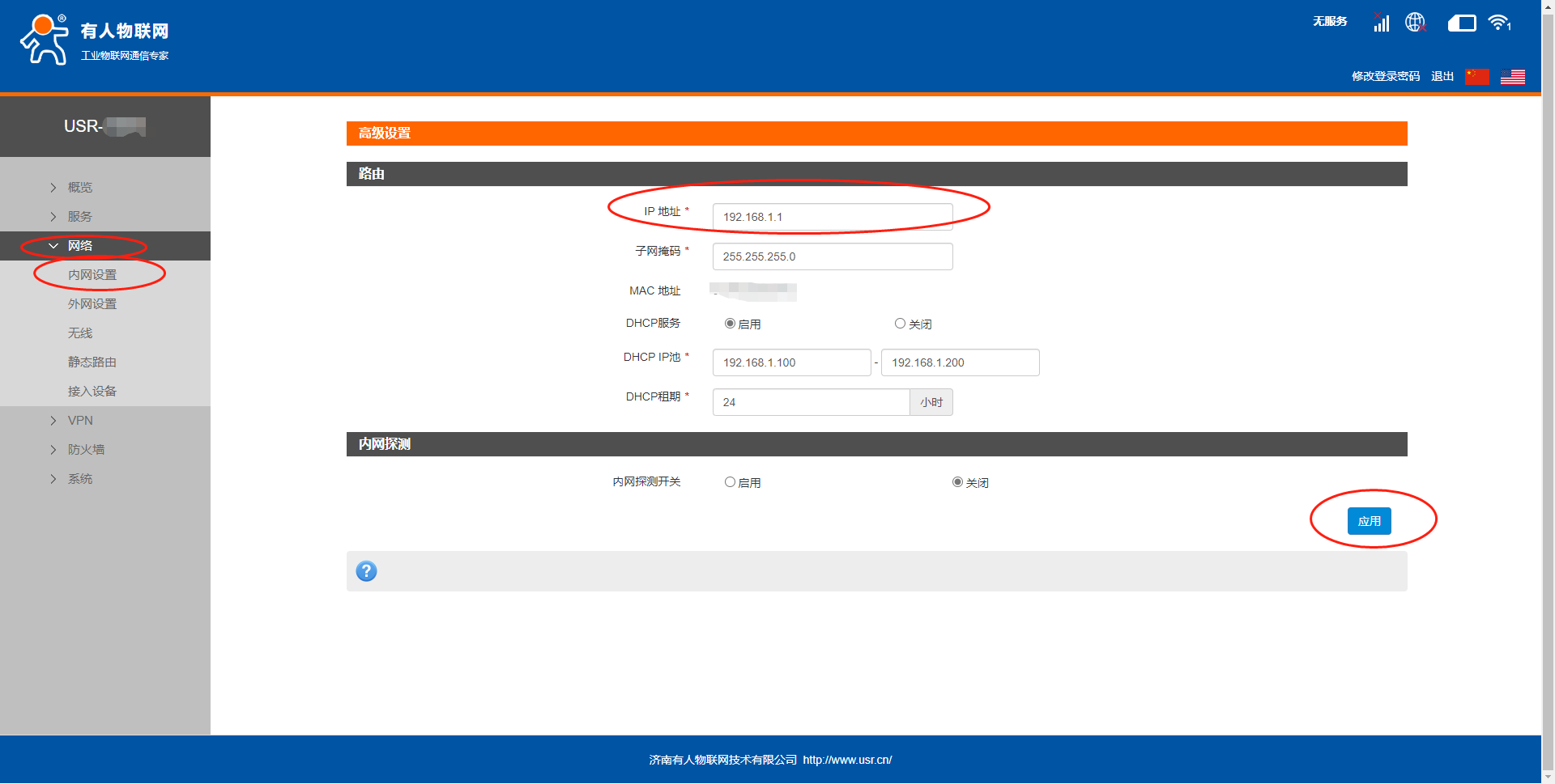 G805(包括RM02RM03DR801)系列:網絡--內網設置--IP地址--應用