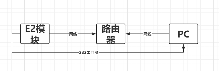 (或者USR-TCP232-E2網口用網線接路由器,電腦也連接同一個工業路由器。USR-TCP232-E2用串口設置軟件設置DHCP,動態獲取IP)