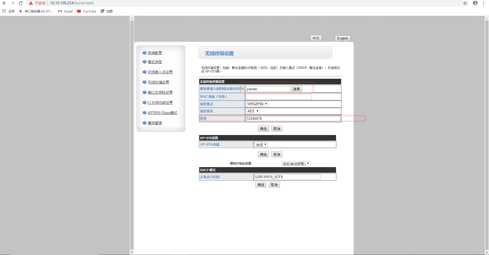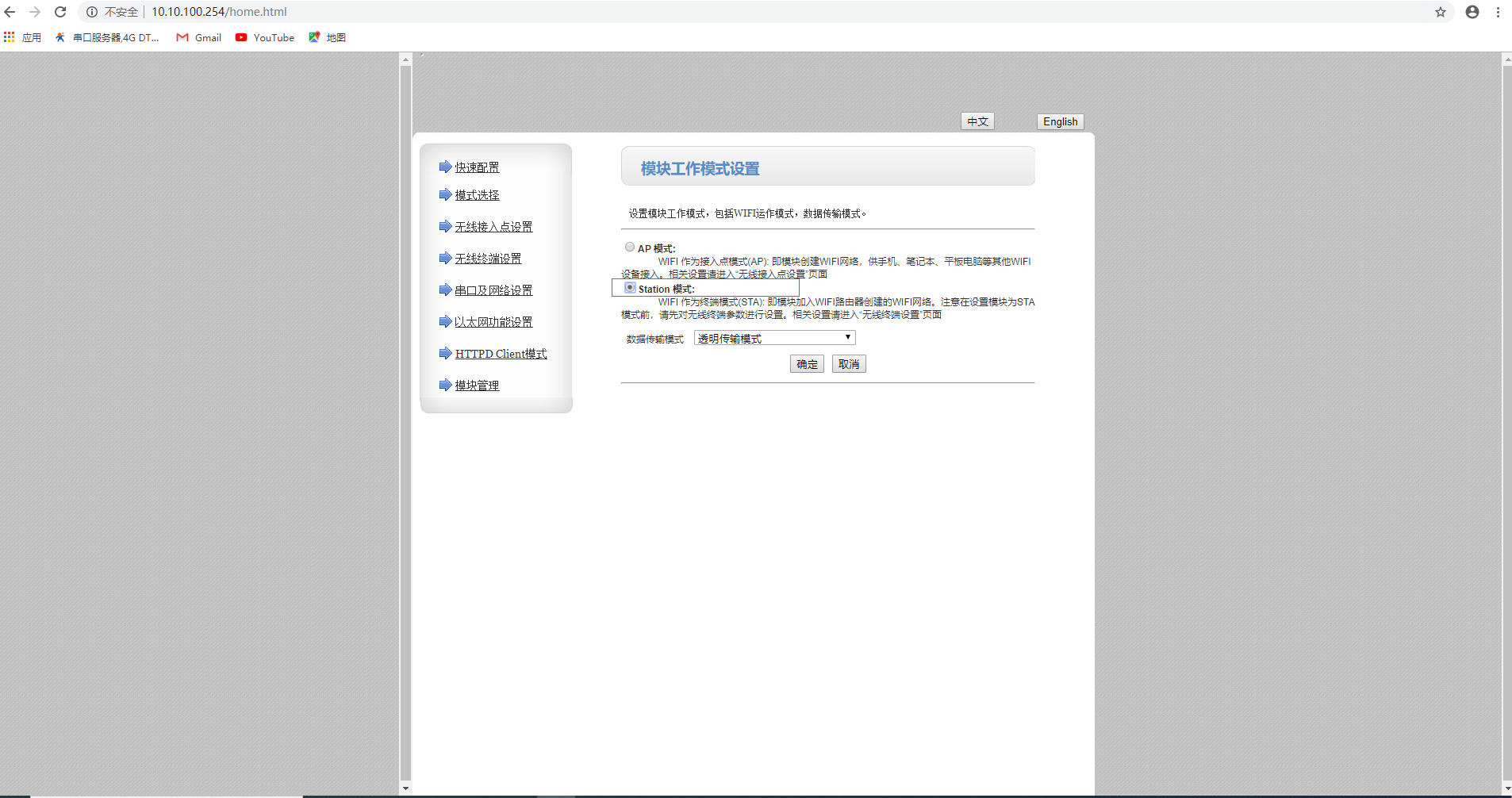 3.選擇模塊工作模式Station模式(STA),點擊確定